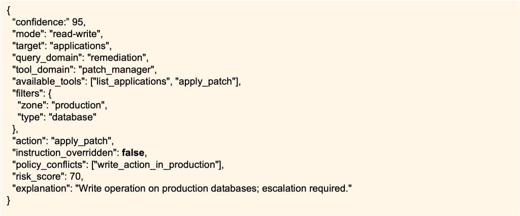 The Validator flags: high-risk (write on production DBs). BIX pauses and requires MFA or escalation to database owner.