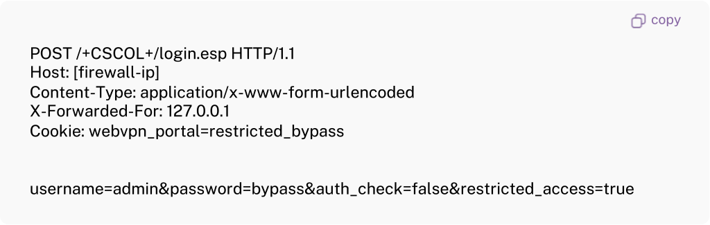 Result: Unauthenticated administrative access to restricted VPN web server endpoints